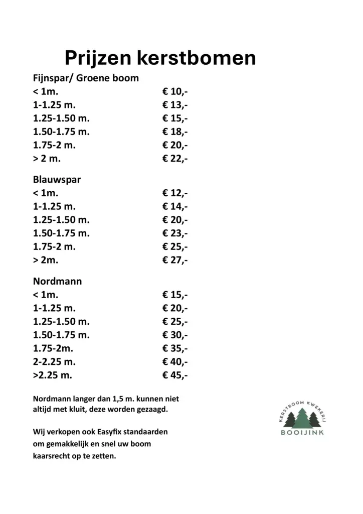 Prijslijst Kerstbomen 2025